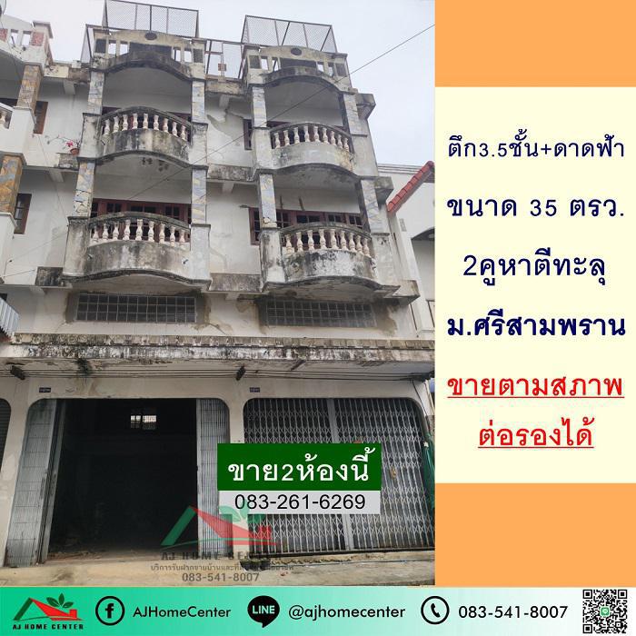 ขายตามสภาพ ตึก3.5ชั้น 2คูหาตีทะลุ 35ตรว. ม.ศรีสามพราน ราคาพร้อมคุย