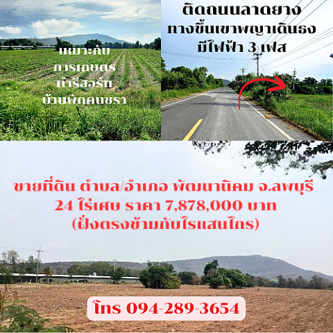 ขายถูก!! ที่ดินเปล่า 24 ไร่เศษ วิวภูเขา ถนนลาดยาง ตรงข้ามไร่แสนไกล ทางขึ้นจุดชมวิวเขาพระยาเดินธง ต.พัฒนานิคม อ.พัฒนานิคม จ.ลพบุรี เจ้าของขายเอง