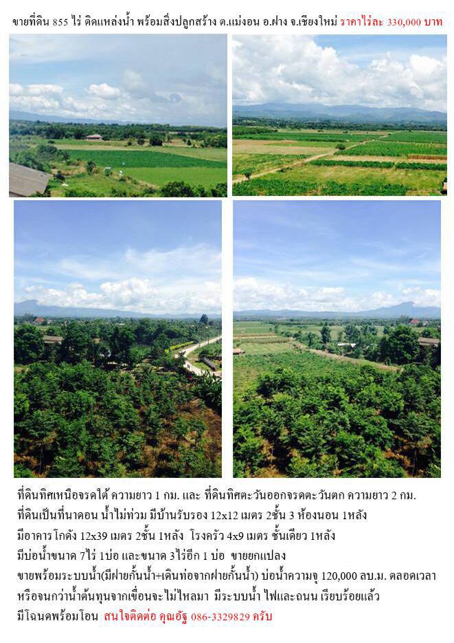 ขายที่ดินแปลงใหญ่ ติดแหล่งน้ำ พร้อมสิ่งปลูกสร้าง 855ไร่ ต.แม่งอน อ.ฝาง จ.เชียงใหม่