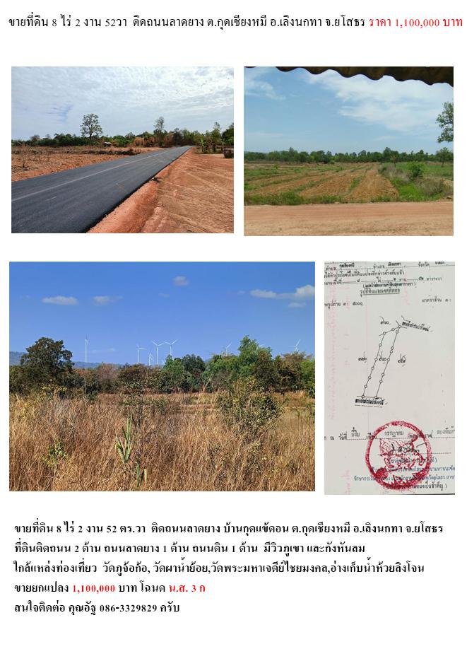 ขายที่ดิน เลิงนกทา จ. ยโสธรครับ 8 ไร่ 2 งาน 52 วา
