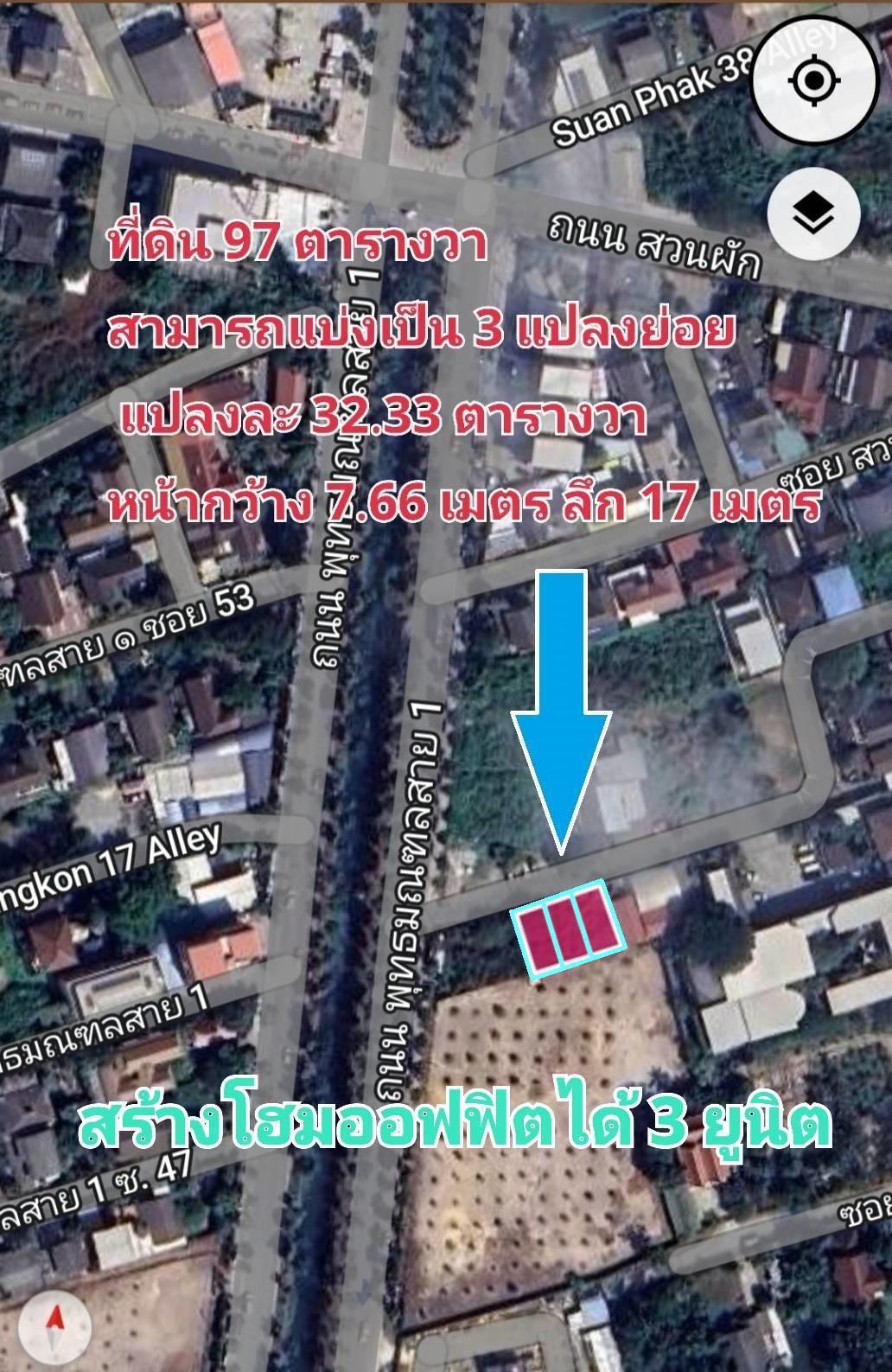 ขายที่ดิน พุทธมณฑลสาย 1 แขวงฉิมพลี เขตตลิ่งชัน เนื้อที่ 97 ตารางวา อยู่ปากซอยพุทธมณฑลสาย 1 ซอย 34