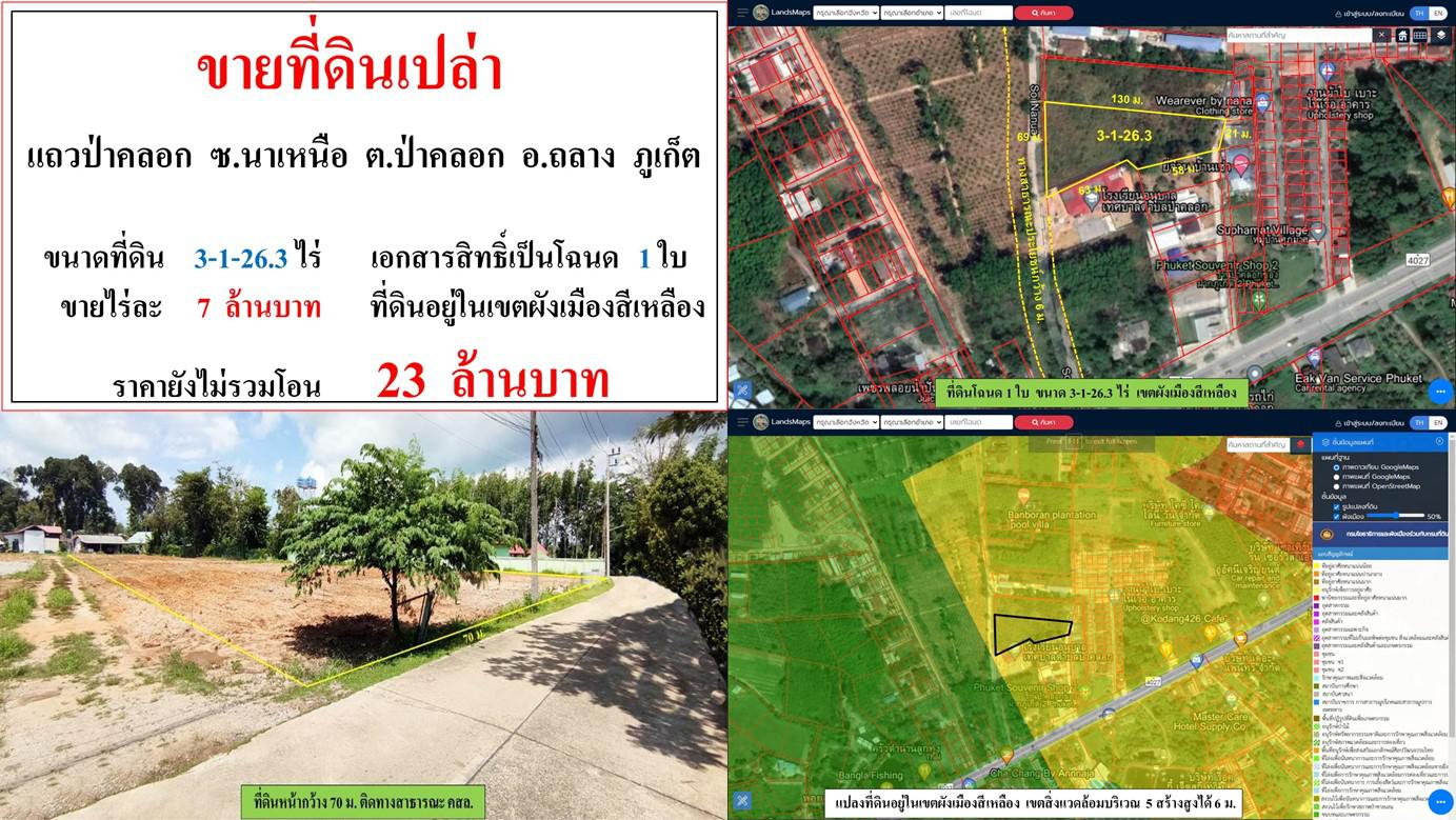 ขายที่ดินเปล่า ขนาด 3-1-26.3 ไร่ แถวป่าคลอก ซ.นาเหนือ ต.ป่าคลอก อ.ถลาง ภูเก็ต