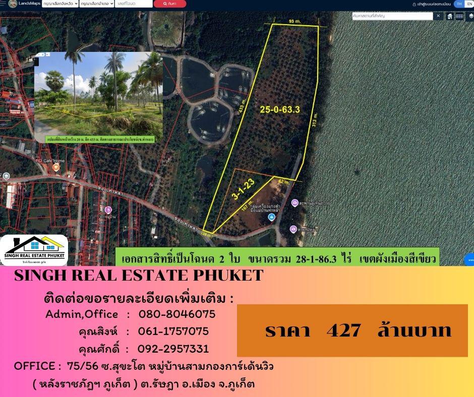 ทุนพัฒนาท่านใดสนใจที่ดินแปลงนี้จะซื้อเพื่ออยู่หรือพัฒนา สามารถติดต่อขอรายละเอียดเพิ่มเติมได้ที่ สิงห์ เรียล เอสเตท ภูเก็ต