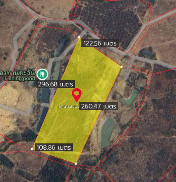 # พื้นที่เป็นสี่เหลี่ยมสวย หน้ากว้างติดถนน 122 เมตร ลึก 260 เมตร พื้นที่สมบูรณ์ไม่มีบ่อน้ำ