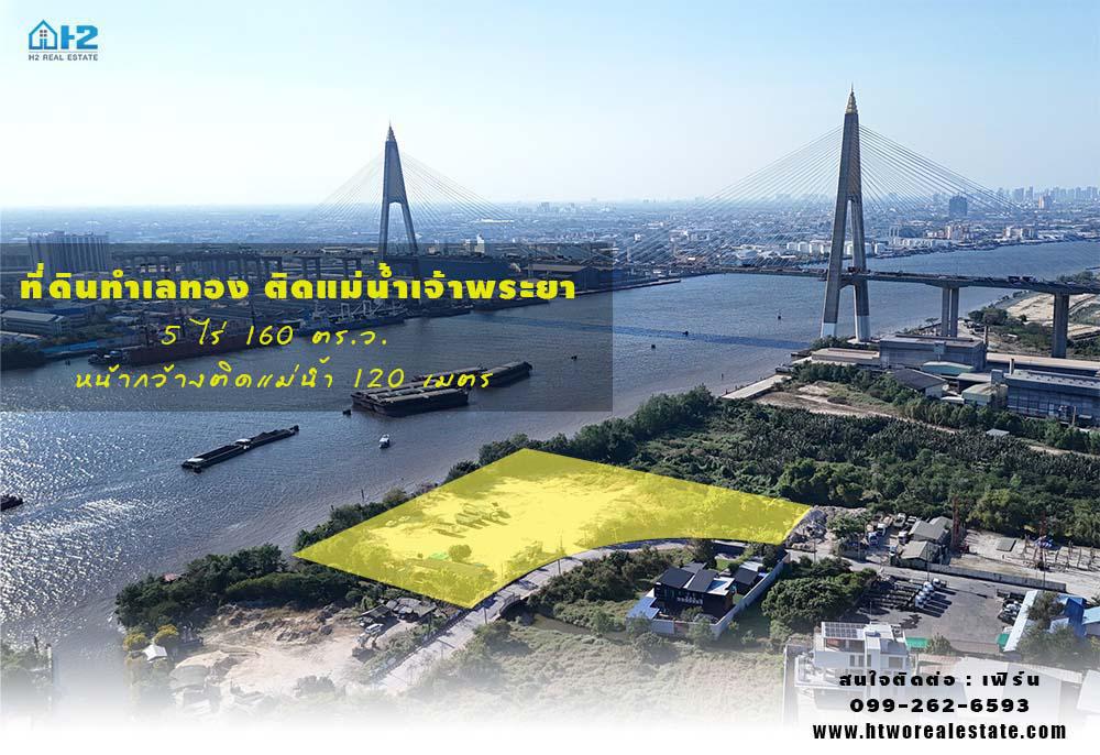 ขายที่ดิน ทำเลทองติดแม่น้ำเจ้าพระยา ได้วิวสะพานกาญจนาภิเษก (เนื้อที่ 5 ไร่ 160 ตรว. ) อำเภอ พระประแดง จังหวัด สมุทรปราการ