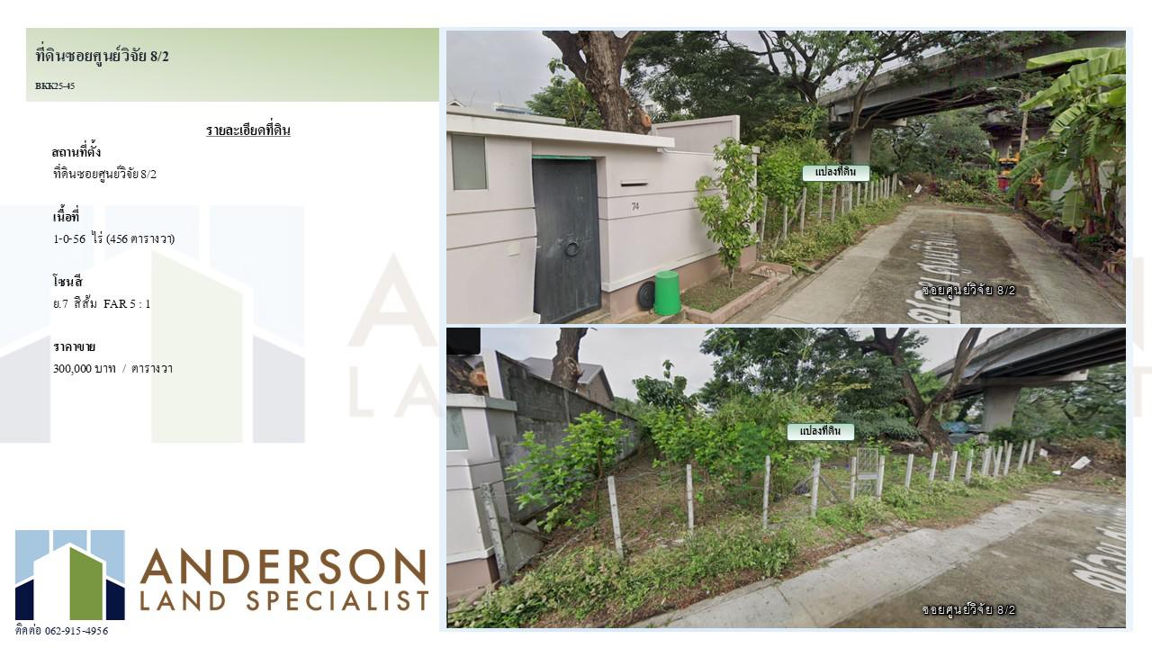 ขายที่ดินแปลงสวย ทำเลพรีเมียม! ซอยศูนย์วิจัย 8/2 ขนาดที่ดิน: 456 ตารางวา