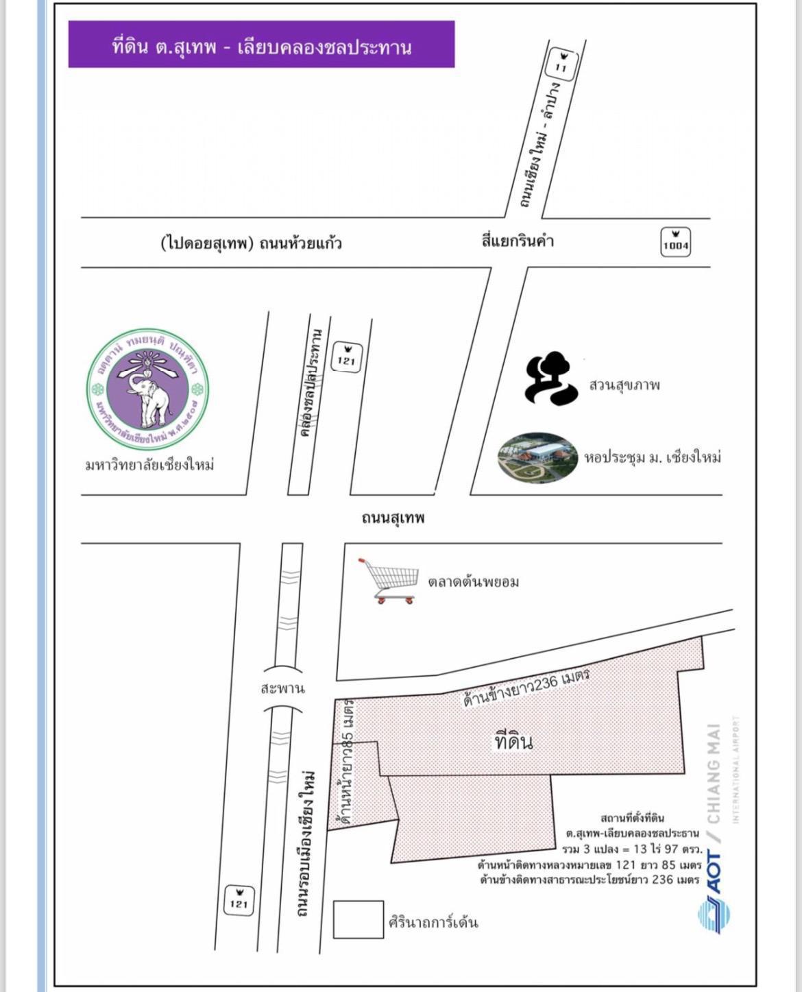1. ที่ดินตั้งอยู่ ถนนเลียบคลองชลประทาน (ทางหลวงหมายเลข 121) ตำบลสุเทพ อำเภอเมือง จังหวัดเชียงใหม่