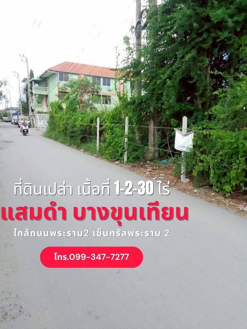 ขายที่ดินซอยแสมดำ บางขุนเทียน ใกล้ถนนพระราม2 ใกล้เซ็นทรัลพระราม 2ใกล้วัดพรหมรังษี พื้นที่1-2-30 ไร่ ที่ดินแปลงสวย กว้าง