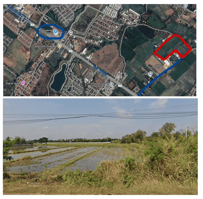 ที่ดินตั้งอยู่ สันกำแพงสายนอก ห่างจากถนนซุปเปอร์ 150-200 เมตร