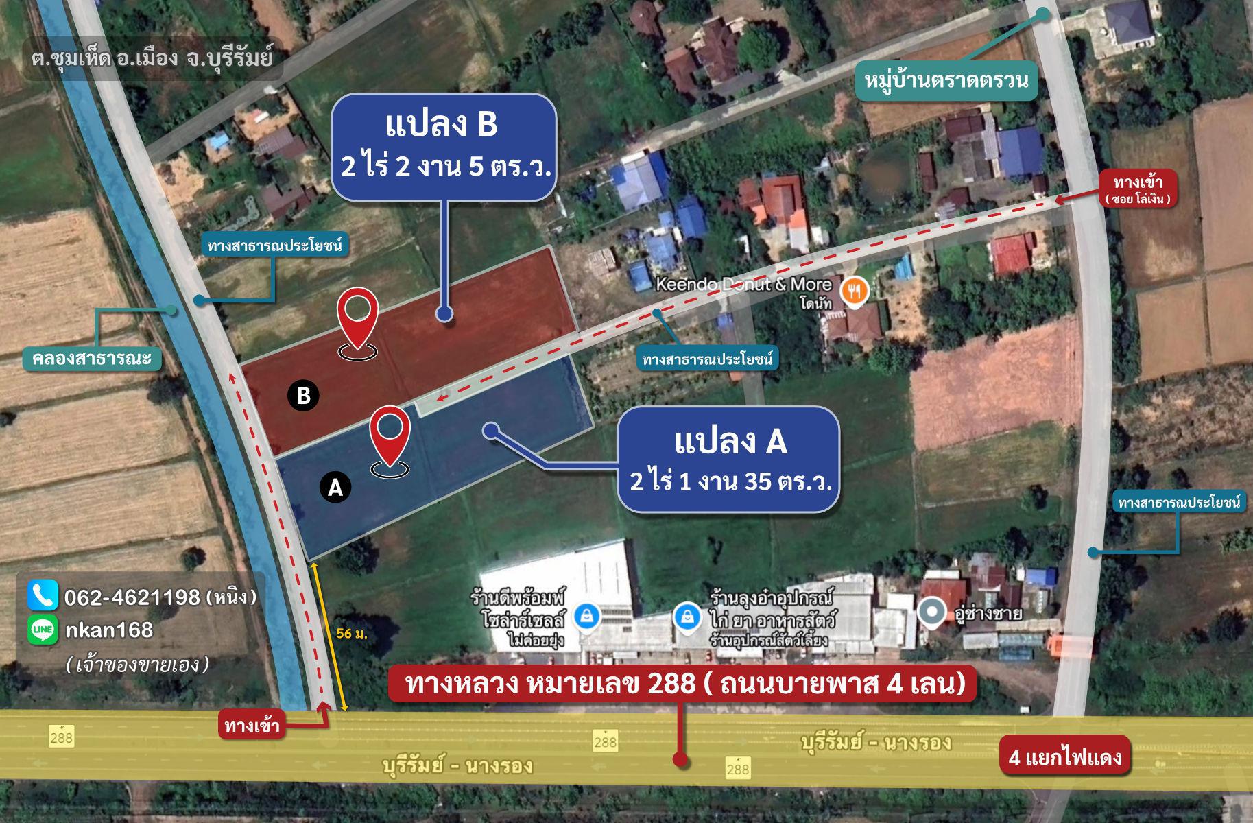 ขายที่ดินทำเลทอง เมืองบุรีรัมย์ เจ้าของขายเอง โฉนดครุฑแดง ใกล้ ม.เฉลิมกาญจนา คริสตจักร รพ.บุรีรัมย์/ 2 ไร่กว่า สองแปลง