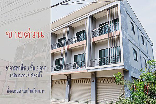 ขายด่วน อาคารพาณิชย์ 3 ชั้น 2 คูหาเปิดโล่ง ติดถนนใหญ่ ใกล้แยกหนองชาก บ้านบึง