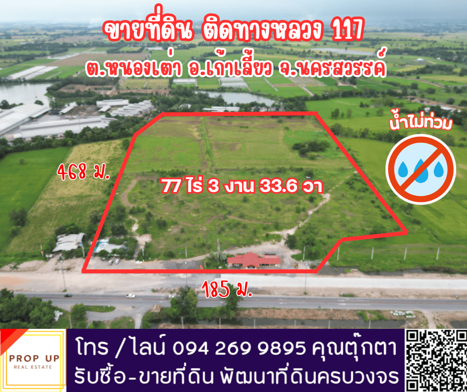 หน้ากว้างติดถนน 185 ม. ความยาว 468 ม.