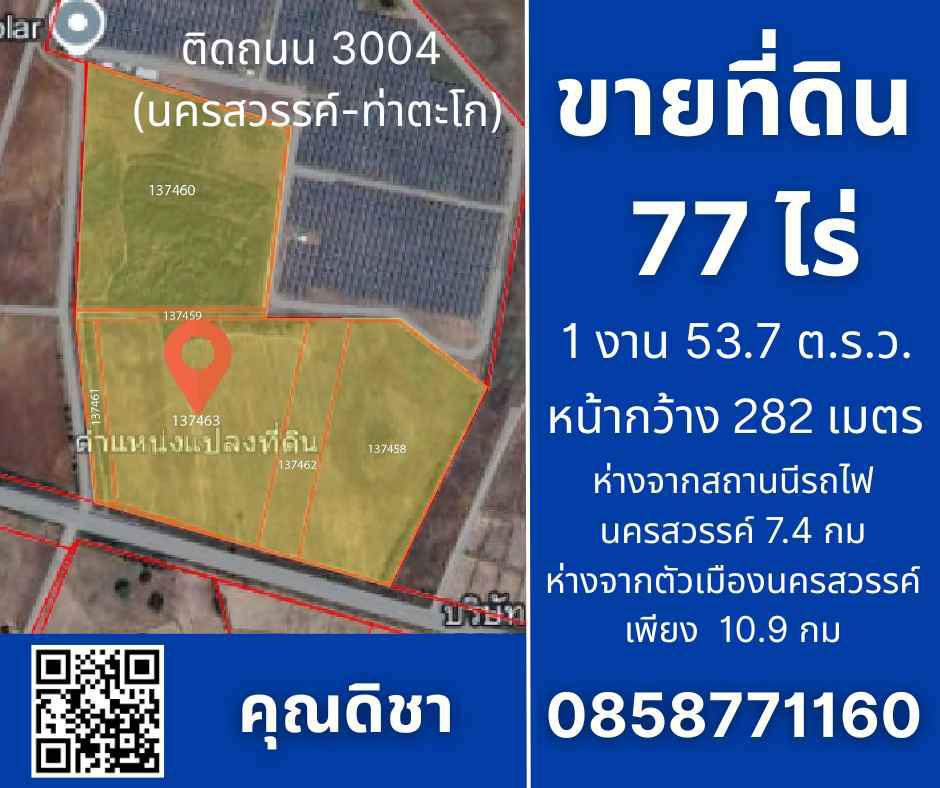 ขายที่ดิน 77 ไร่ 1 งาน 53.7 ตารางวา ติดถนน 3004 ตำบลปลวกสูง อำเภอเมือง จังหวัดนครสวรรค์(นครสวรรค์ท่าตะโก) ห่างจากสถานีรถไฟ นครสวรรค์ เพียง 4.9 กม.