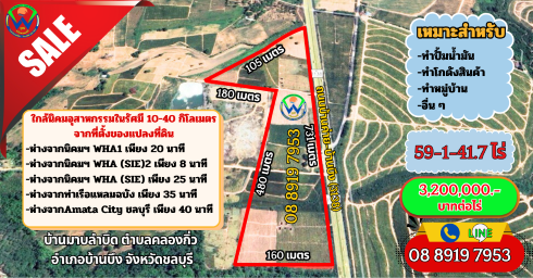59-1-41.7 ไร่ ติดถนนบ้านบึง-บ้านค่าย (3138) ยาว 731 เมตร