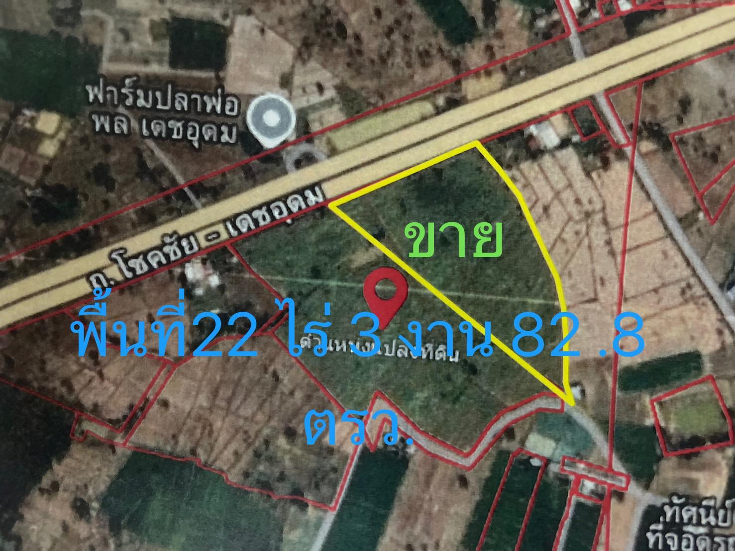ขนาด เนื้อที่ ดิน 22 ไร่ 3 งาน 82 ตรว. ขายไร่ ละ800,000 บาท