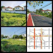 (ที่ดินติดป้อมยามทางเข้าหมู่บ้าน) ด้านหลังเป็นบ้านโครงการ 4หลัง