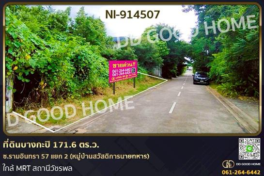 NI-914507 ที่ดินบางกะปิ 171.6 ตร.ว. ซ.รามอินทรา 57 แยก 2 (หมู่บ้านสวัสดิการนายทหาร) ใกล้ MRT สถานีวัชรพล