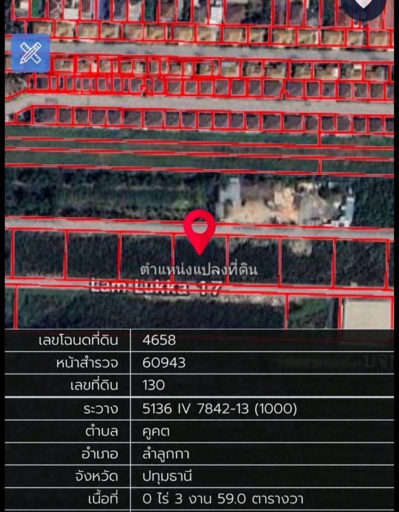 ขายที่ดินซอยลำลูกกา 17 ทั้งหมด 8 แปลง ขนาด 3 งาน 59 ตร.วา เดินทางง่าย ใกล้ถนนใหญ่ คูคต ลำลูกกา ปทุมธานี