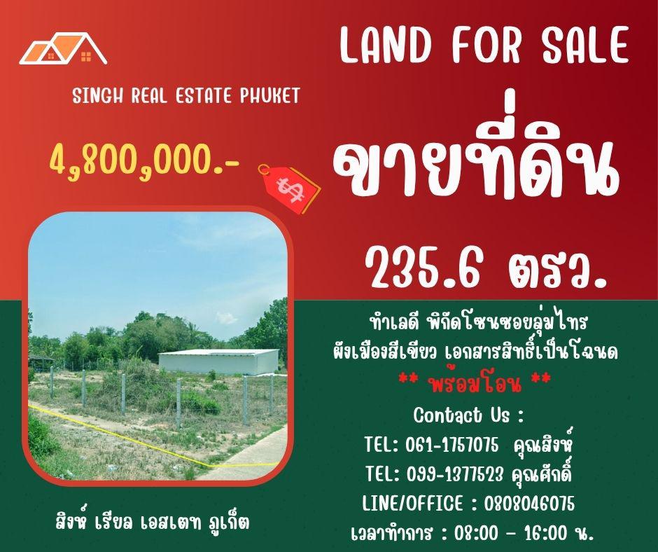 ** LAND FOR SALE ** ขนาดที่ดิน 235.6 ตรว. ( ซอยลุ่มไทร - ป่าคลอก )