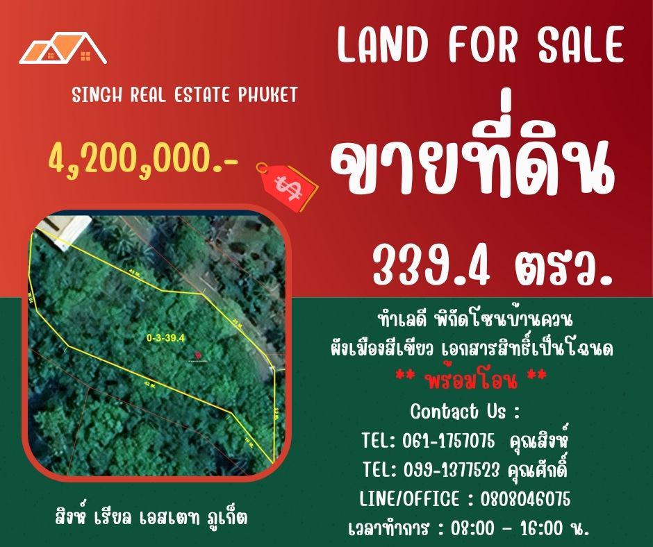 ** LAND FOR SALE ** ขนาดที่ดิน 339.4 ตรว. ( บ้านควน - ใกล้ศูนย์โพธิธรรมญาณสถาน )