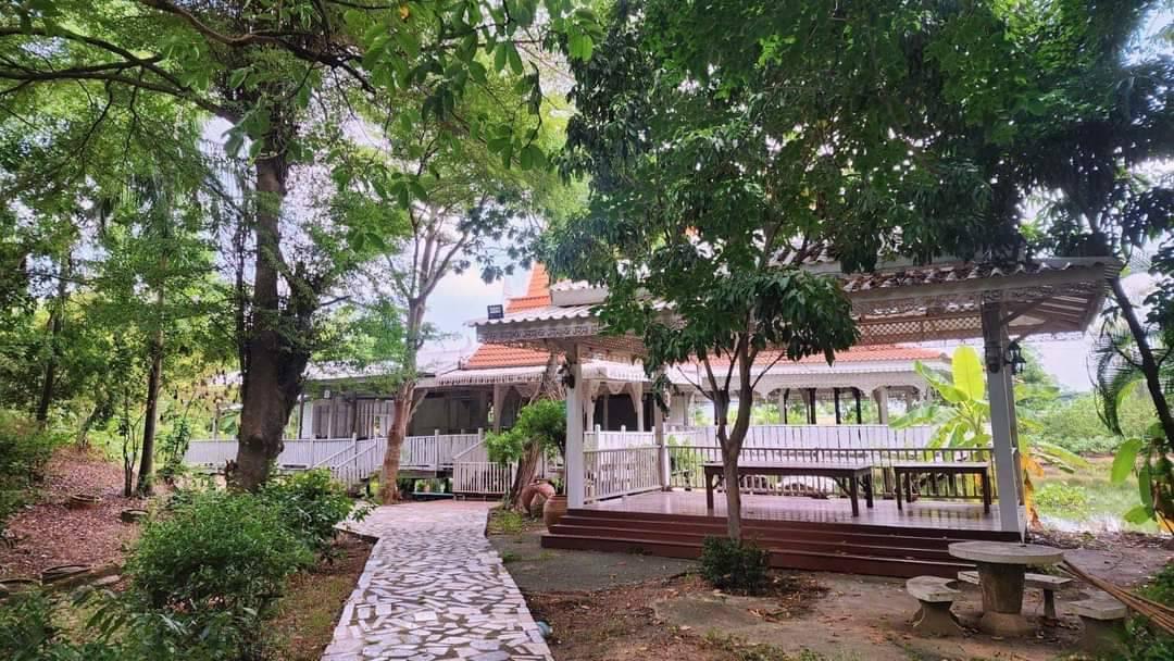 ที่ดินบ้านสวนขนาดใหญ่ มีไม้สวนและไม้สักจำนวนมาก ผืนเดียวติดแม่น้ำบางขาม