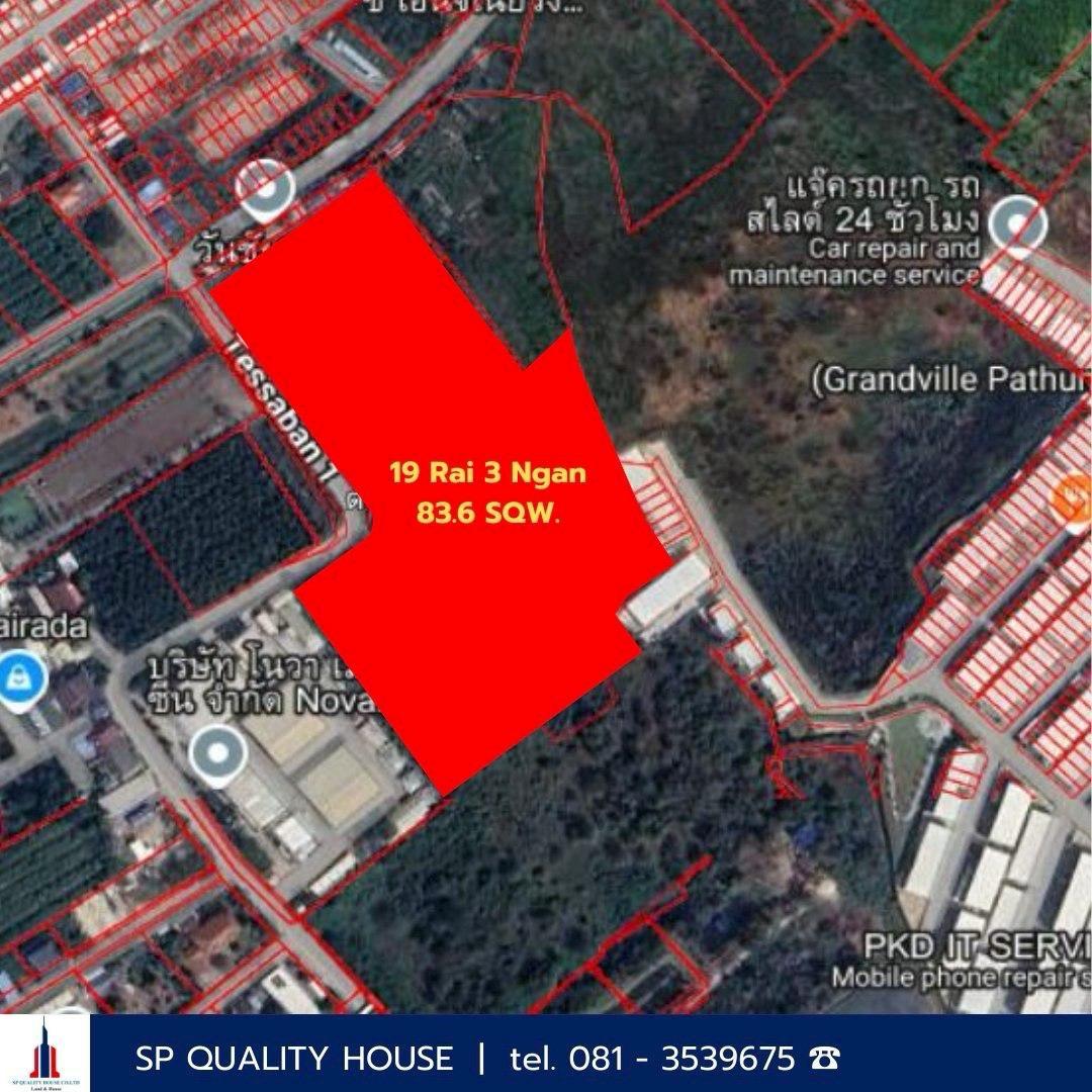 ขายที่ดินแปลงใหญ่ ทำเลดี จังหวัดปทุมธานี ที่ดินรวม 19 ไร่ 3 งาน 83.6 ตารางวา (7,983.6 ตร.วา หรือ 31,934.4 ตร.ม.)