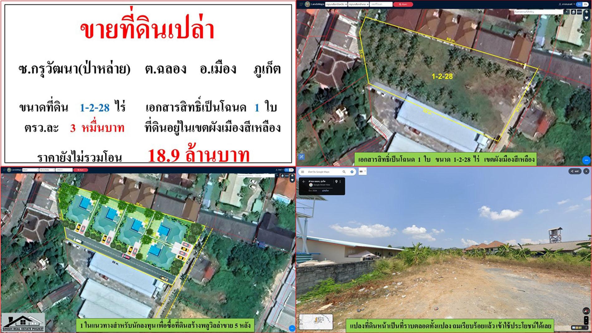 ขายที่ดินเปล่า ขนาด 1-2-28 ไร่ ซ.กรุวัฒนา(ป่าหล่าย) ต.ฉลอง อ.เมือง ภูเก็ต