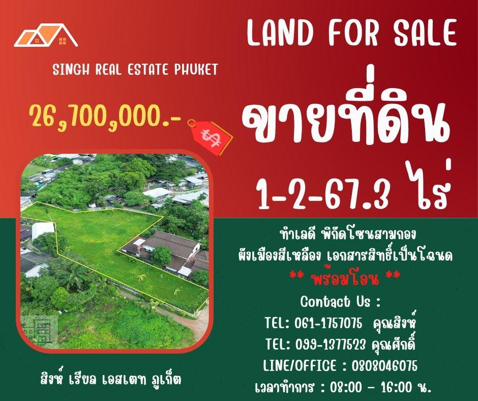 ** LAND FOR SALE ** ขนาดที่ดิน 1-2-67.3 ไร่ ( อิ่มเอมหมูกะทะ - สามกอง )