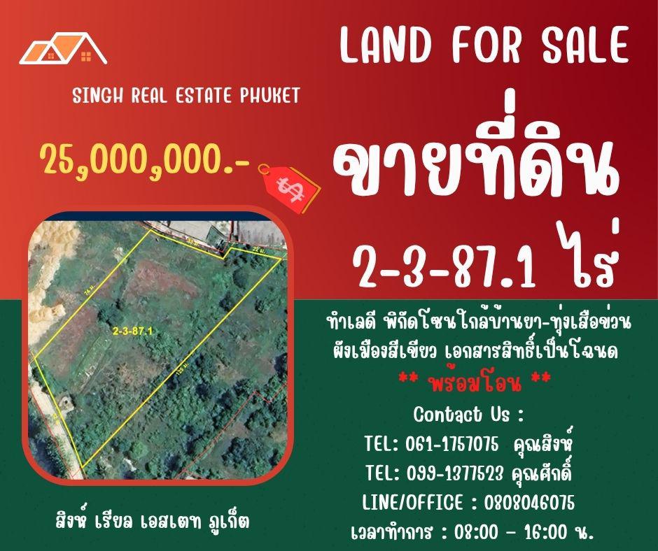 ** LAND FOR SALE ** ขนาดที่ดิน 2-3-87.1 ไร่ ( บ้านยา-ทุ่งเสือข่วน )