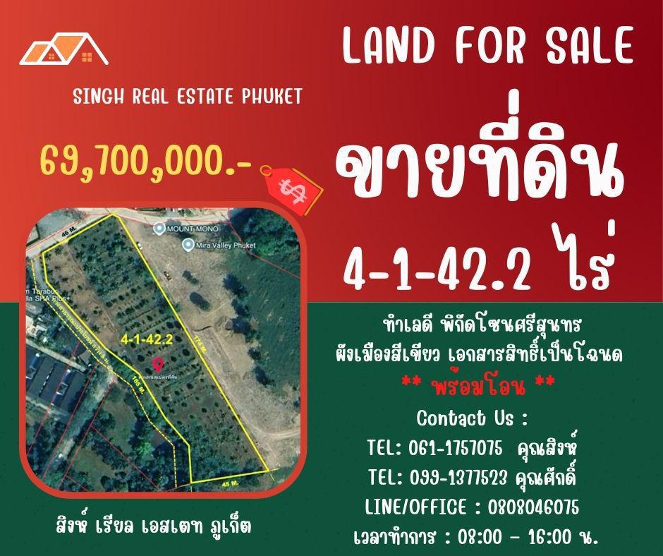 ** LAND FOR SALE ** ขนาดที่ดิน 4-1-42.2 ไร่ ( ใกล้เขื่อนบางเหนียวดำ - ศรีสุนทร )