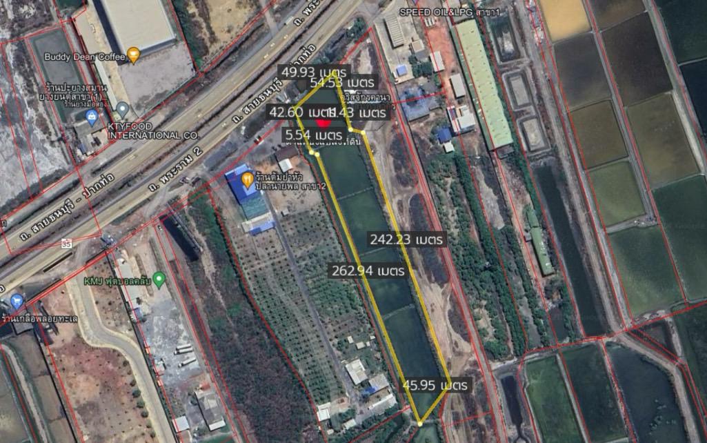 ขายที่ดิน7ไร่1งาน23ตารางวา ถมแล้ว ติดถนนพระราม2ขาออก กม.48 หน้ากว้าง50เมตร เหมาะสร้างโรงงาน โกดัง ปั้ม ที่พักรถ