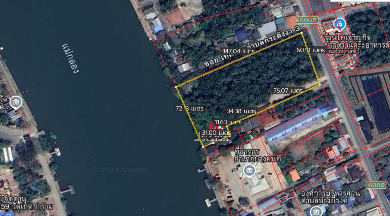 ขายที่ดิน5ไร่2งาน68ตารางวา ติดแม่น้ำแม่กลอง55เมตร ติดถนนลาดยาง56เมตร ติดอำเภอบางคนที ใกล้โรงพยาบาลนภาลัยเพียง350เมตร