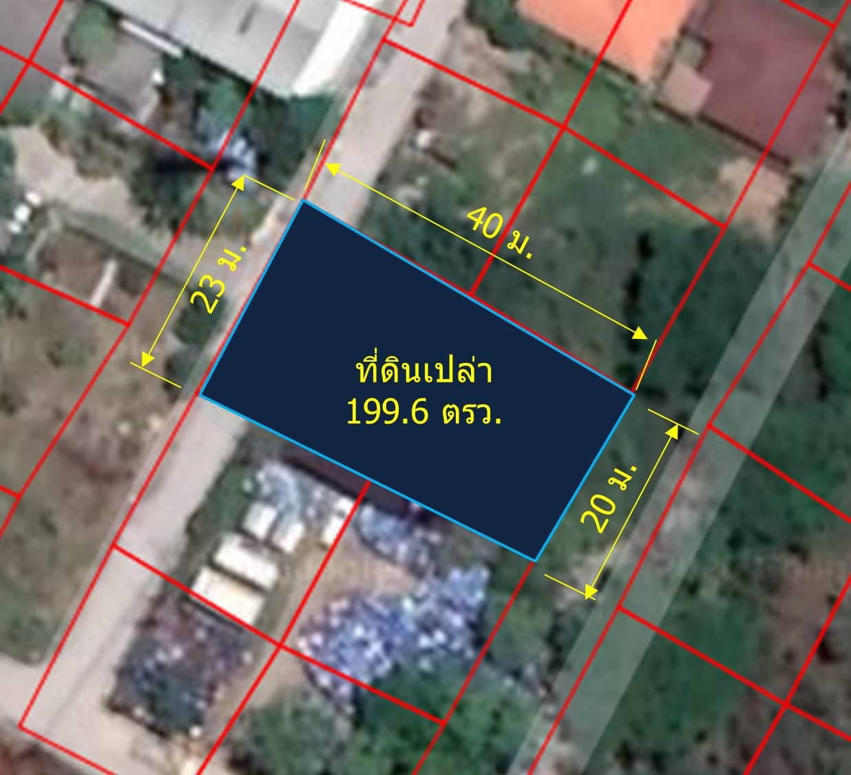 # พื้นที่เป็นสี่หลี่ยม หน้ากว้างติดถนน 2 ด้านหัว-ท้าย 23 เมตร และ 20 เมตร ลึก 40 เมตร