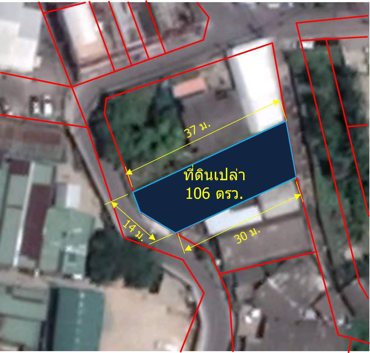 # พื้นที่เป็นสี่หลี่ยมผืนผ้ายาว หน้ากว้างติดถนน 14 เมตร และ 30 เมตร