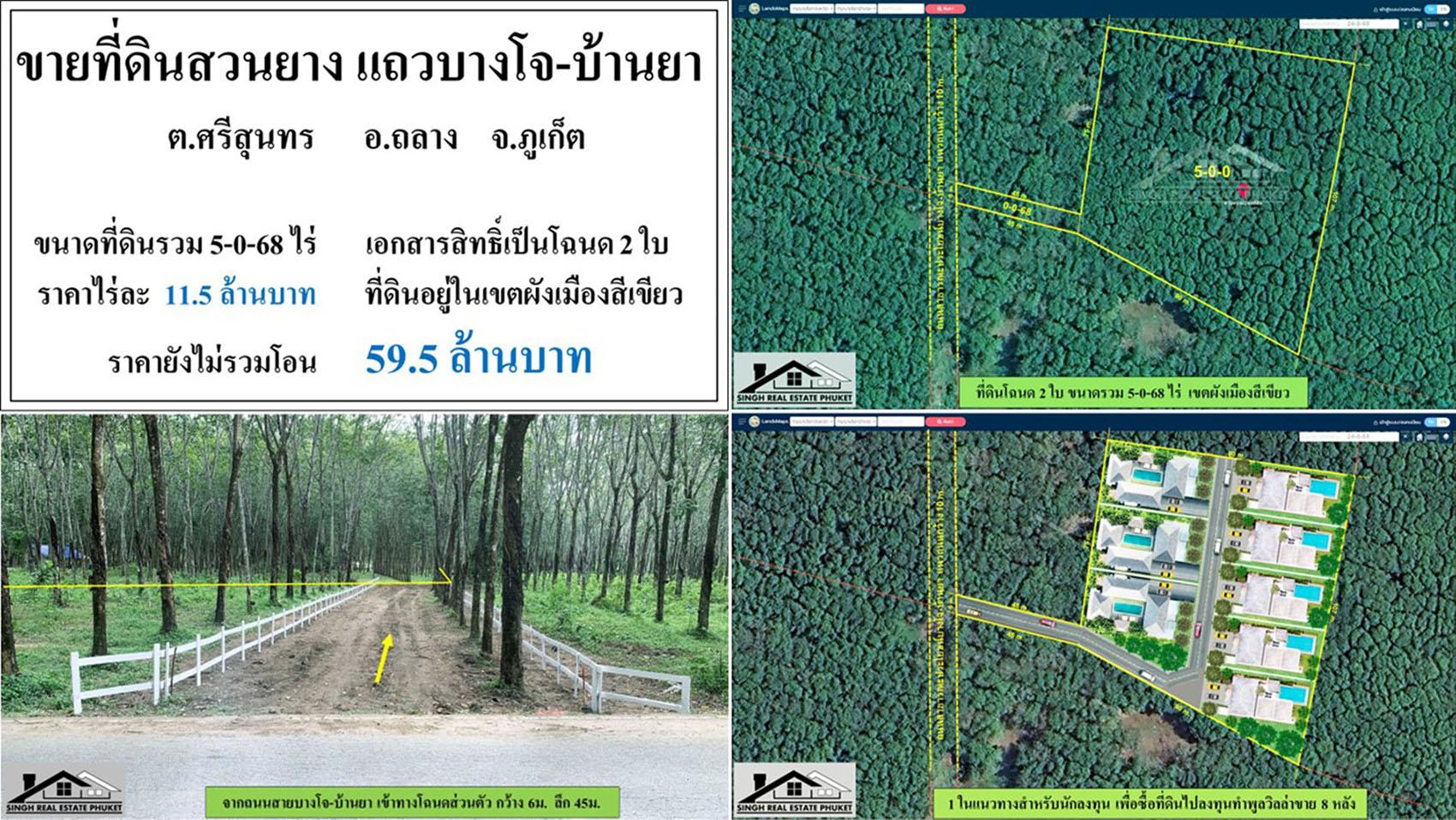 ขายที่ดินสวนยาง 5-0-68ไร่ โฉนด2ใบ ผังเมืองสีเหลือง ***ไร่11.5ลบ.***