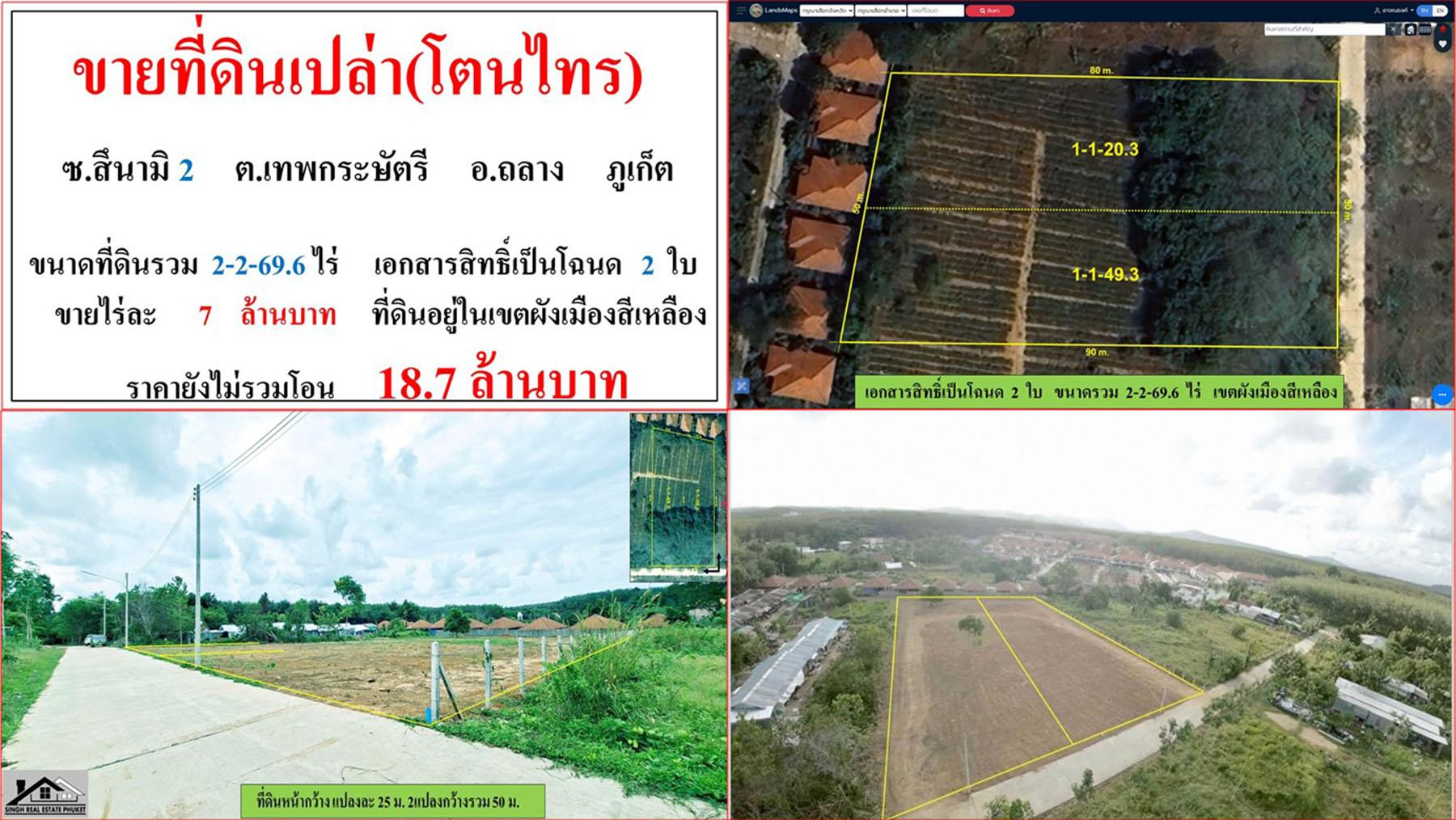 ขายที่ดินเปล่า(โตนไทร) ขนาด 2-2-69.6 ไร่ ซ.สึนามิ 2 ต.เทพกระษัตรี อ.ถลาง ภูเก็ต