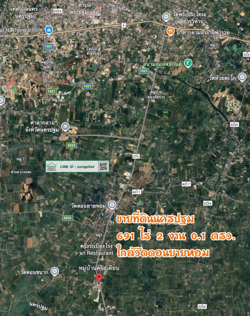 ขายที่ดินนครปฐม ใกล้วัดดอนยายหอม โฉนด 691 ไร่ 2 งาน 0.1 ตรว.