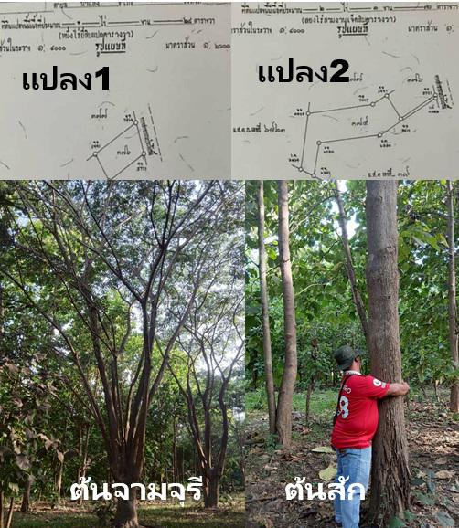 ในที่ดินปลูกต้นจามจุรีต้นใหญ่ 24 ต้น ปลูกขนาบเป็นทางเข้าคู่กัน ต้นใหญ่สวยงามมาก