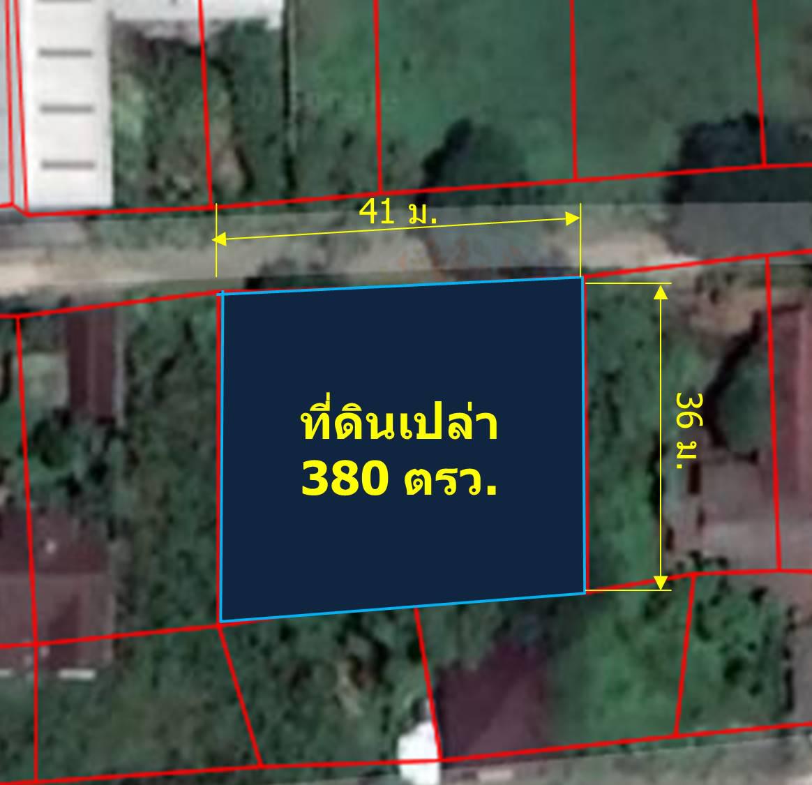 # พื้นที่เป็นรูปสี่เหลี่ยม มีส่วนด้านหน้ากว้างติดถนน 41 เมตร ลึก 36 เมตร