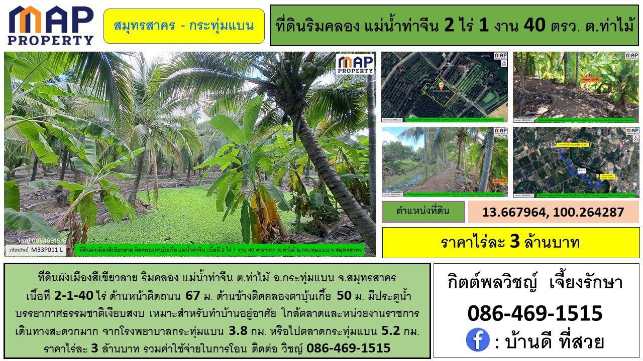 ที่ดินผังเมืองสีเขียวลาย ริมคลอง แม่น้ำท่าจีน ต.ท่าไม้ อ.กระทุ่มแบน จ.สมุทรสาคร