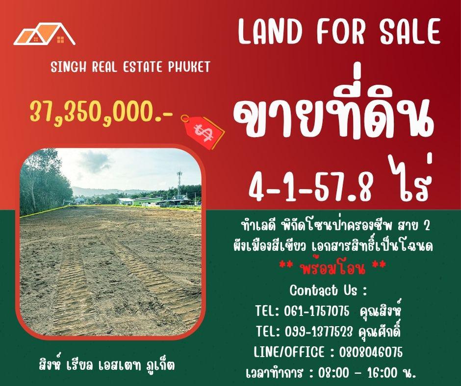 ** LAND FOR SALE ** ขนาดที่ดิน 4-1-57.8 ไร่ ( ติดถนนป่าครองชีพ สาย 2 )