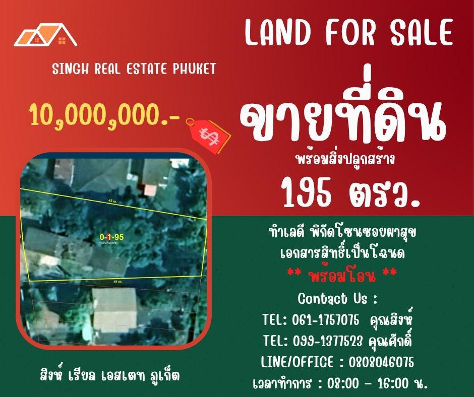 ** LAND FOR SALE ** ขนาดที่ดิน 195 ตรว. ( ซอยผาสุข - เทศบาลเมือง )