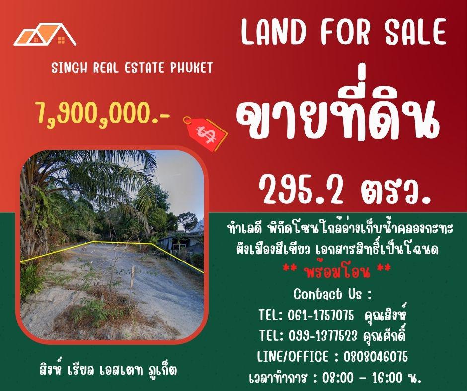 ** LAND FOR SALE ** ขนาดที่ดิน 295.2 ตรว. ( ใกล้อ่างเก็บน้ำคลองกะทะ - ฉลอง )