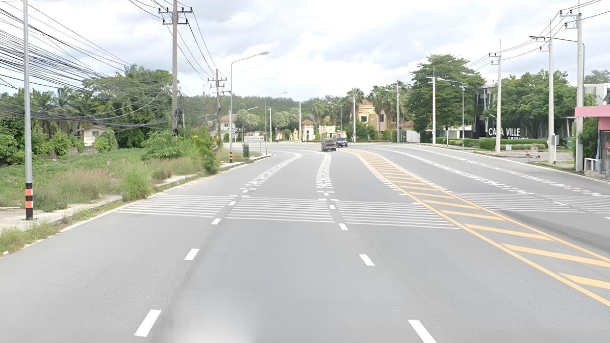 ที่ดินติดถนนสองด้าน ด้านหน้าติดถนน 6 เลน ถนนทางหลวงหมายเลข 3241 หน้ากว้างด้านติดถนนประมาณ 162 เมตร ด้านข้างติดถนนซอย หน้ากว้างติดถนนด้านนี้ประมาณ 265 เมตร ด้านหล้งกว้างประมาณ 120 เมตร ระดับของที่ดินเสมอถนน อยู่ใกล้ฟาร์มจรเข้ศรีราชา ห่างจากถนนมอเตอร์เวย์ ประมาณ 1.2 กม.