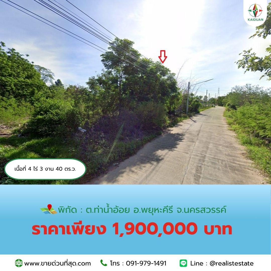 ขายที่ดินนครสวรรค์ 4 ไร่ 3 งาน 40 ตร.ว. ติดถนนเขาไม้เดน ใกล้เมืองโบราณโคกไม้เดน