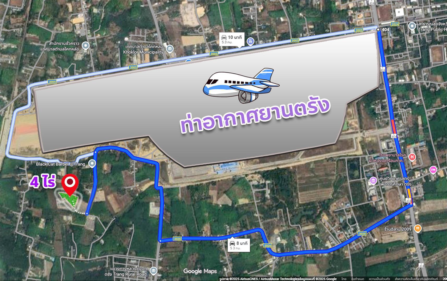 ขายด่วน! ที่ดินเปล่า 4 ไร่ ทำเลทอง ด้านหลังท่าอากาศยานตรัง