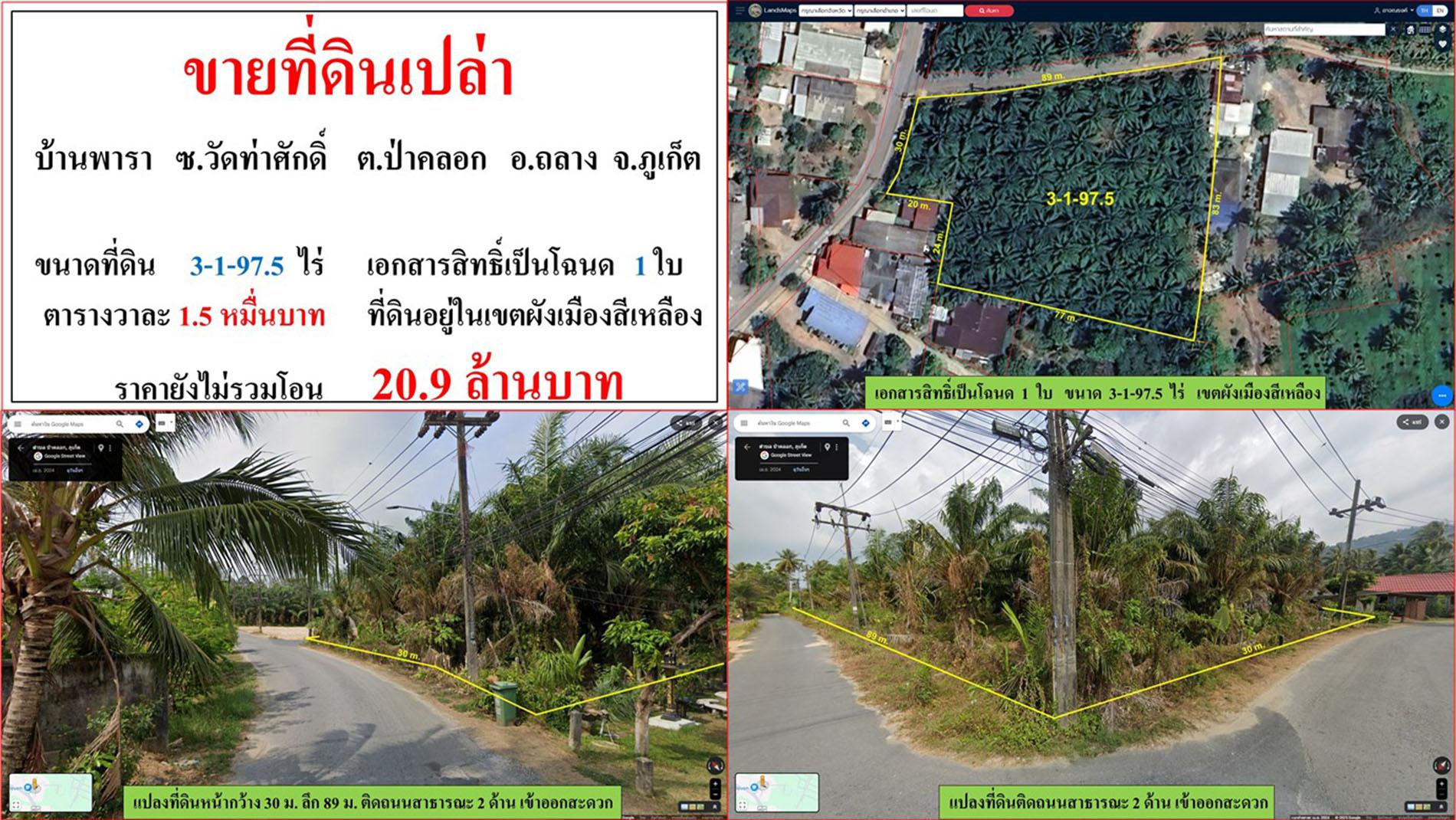 ขายที่ดินเปล่า ขนาด 3-1-97.5 ไร่ บ้านพารา ซ.วัดท่าศักดิ์ ต.ป่าคลอก อ.ถลาง ภูเก็ต