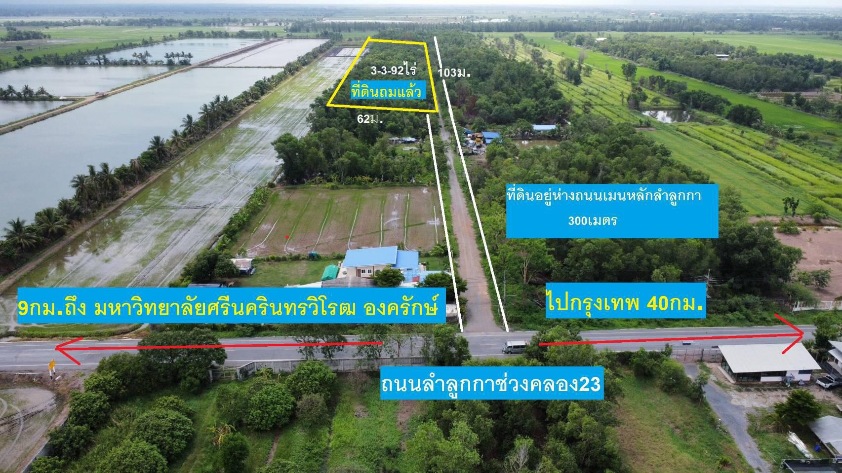 ที่ดินสวยติดถนน เนื้อที่ 4ไร่ คลอง16 ฝั่งตะวันออก หน้ากว้าง 103 ม. ลึก 62 ม. ถนนหน้าที่ดินกว้าง 9.20 ม. อนาคตจะเชื่อมออกถนนเลียบคลองโครงการระบายน้ำหลากป่าสัก - อ่าวไทย ที่กำลังก่อสร้างอยู่ตอนนี้