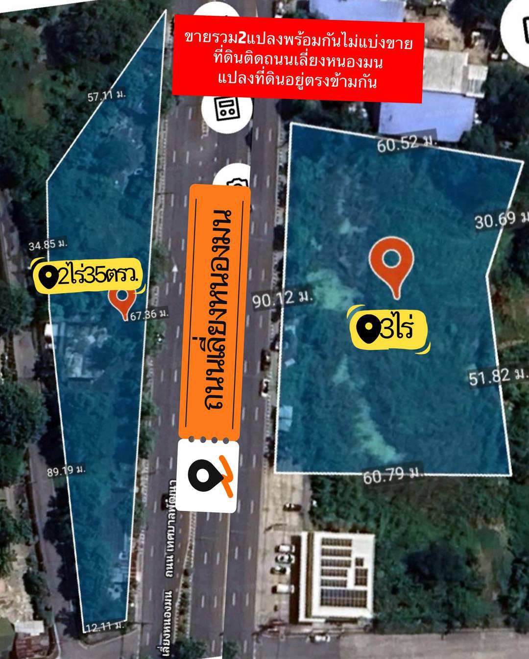 - ที่ดินติดถนนเลี่ยงหนองมนขายพร้อมกันสองแปลง อยู่ฝั่งตรงข้ามถนน