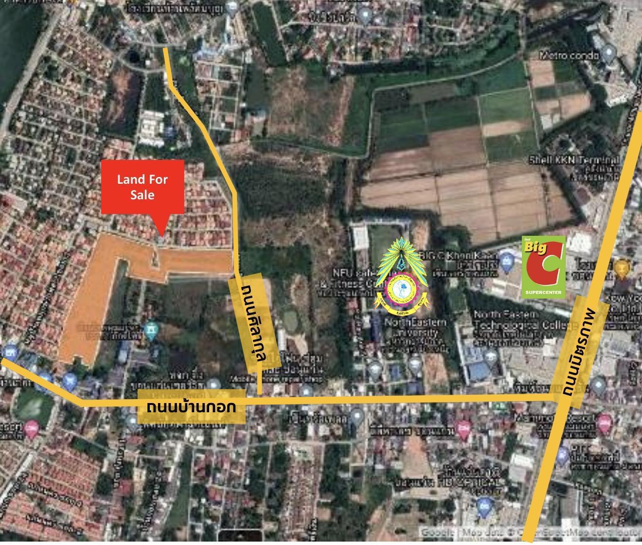特价出售,孔敬府美丽的土地,41 莱,紧邻 Silakun 路,适合开发住宅区、村庄、工厂,地理位置优越。靠近孔敬 Big C、东北大学、孔敬火车站、孔敬中心,对面是 Ton Tan 孔敬市场,